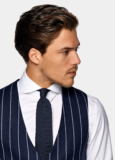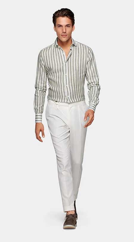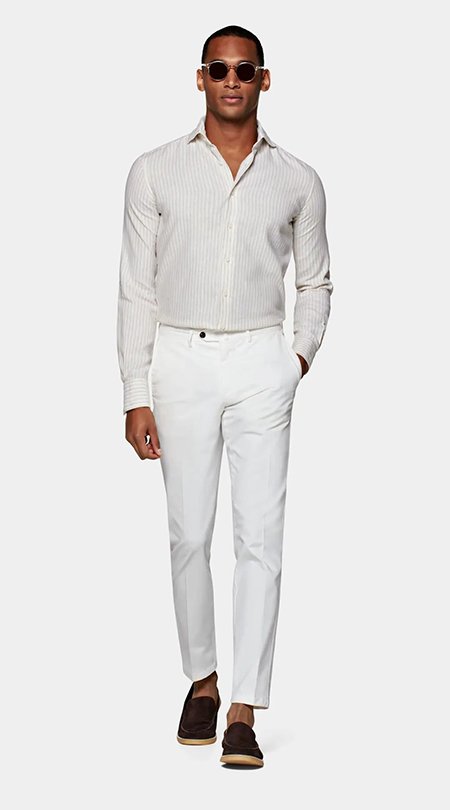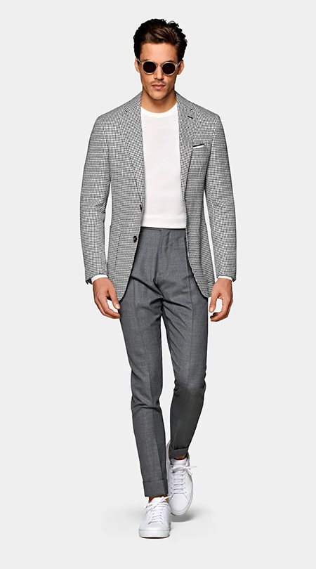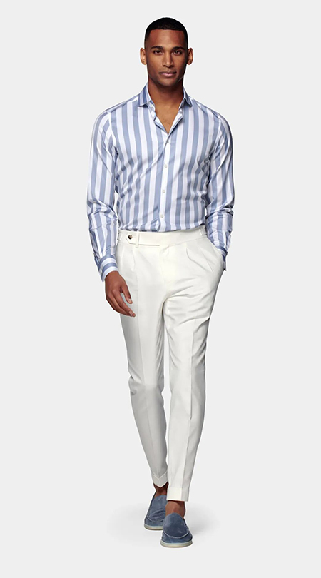 穿條紋西裝時(shí)搭配純色西褲