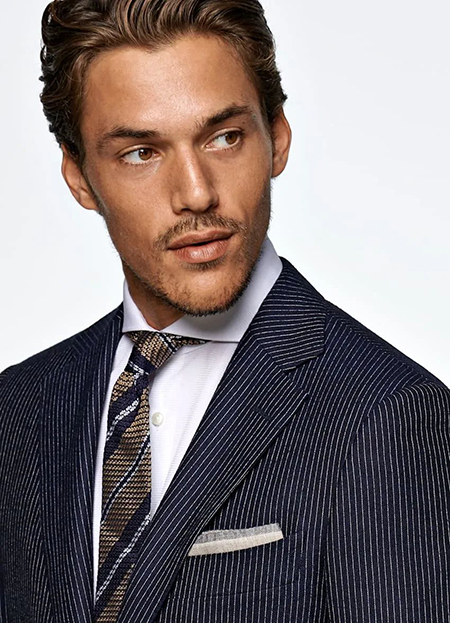 實(shí)力派選手,只要給他一個(gè)簡單的線條,就能輕松掌控全場。多樣化的風(fēng)格,可選擇粗條紋的濃烈,也可選擇細(xì)條紋的低調(diào),隨心掌控。條紋元素,簡簡單單卻能令人印象深刻。在西裝中涂繪上線條,在低調(diào)與張揚(yáng)中找到平衡,是沉穩(wěn)西裝中最獨(dú)特的點(diǎn)睛之筆。