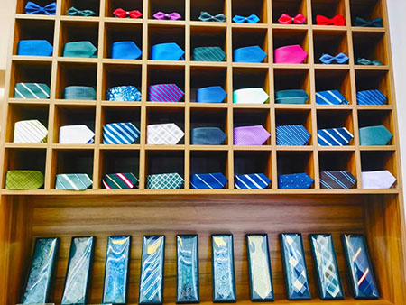 整個店面劃分出多個區(qū)域:西裝樣品區(qū)|襯衫樣品區(qū)|面料區(qū)|袖扣區(qū)|皮鞋......